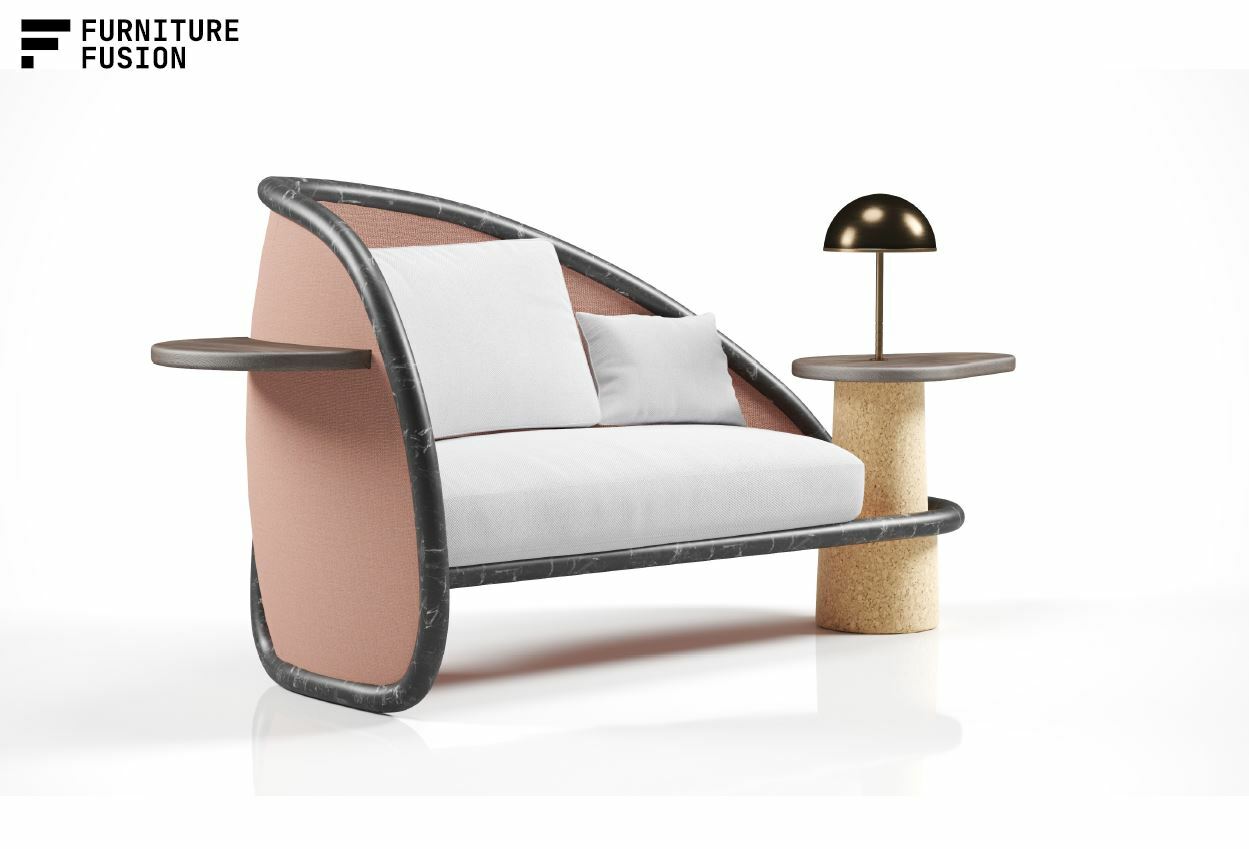 To mark our appearance at HIX2023, we collaborated with design studio Bell & Swift to curate and create something pretty special. Taking inspiration from one of the key themes for HIX2023: Artificial Intelligence, the Bell & Swift team developed a statement bespoke sofa for a hotel lobby using AI-generated fabrics. The combination of the curved tubular frame, desk and integrated table really pushed us to see what we could make. It also featured a Polygood® tabletop - a high-quality surface material made from fully recycled and recyclable plastic.