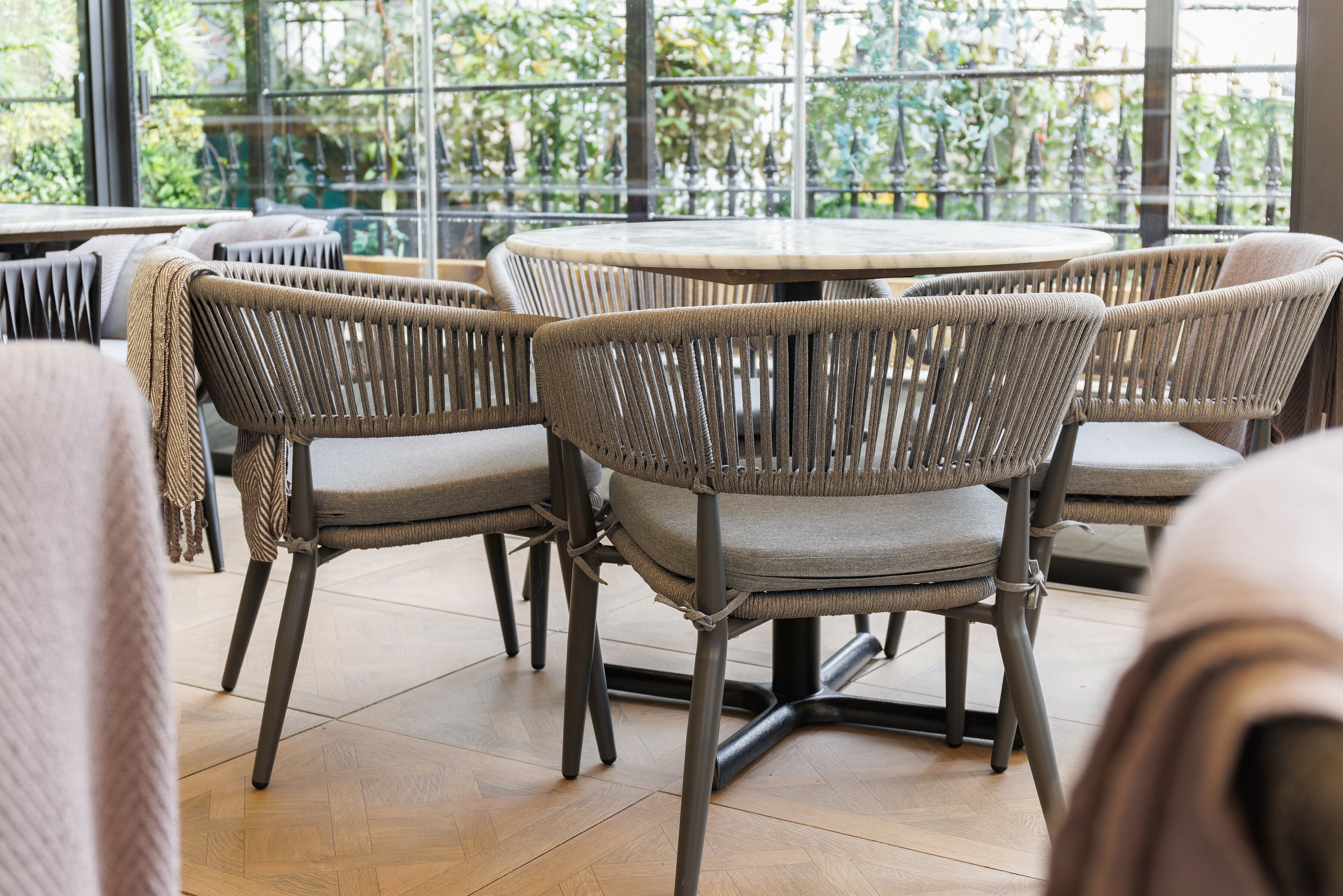 We were also invited to furnish the restaurant's conservatory. We supplied our popular Madrid Armchair as well as the Tico armchair - both a smart and practical choice with woven weatherproof backrests and matching outdoor cushions.
